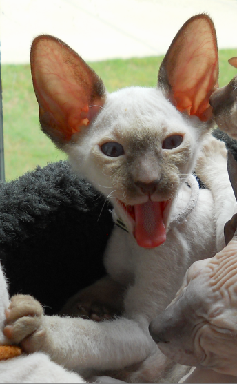 I. Am. Gus. I am a cat. A (Russian) Peterbald to be exact. But I am not totally bald. I have some rat like fur on my back, and some really soft velvet on my paws and face. This is a picture of me when I was a small kitten, still together with my mom and my littermates. Now I live with my “brother”, Oscar. I am older by a month, so I am sort of still in charge. But now that we are full grown, he is bigger than I. I love him. He keeps me from being lonely, and he keeps me warm. You will have to check out his tab to learn more about him. Back to me. I am technically a cat, but I think I am a person. I talk a lot. I don’t think they know what I am saying, but they do “meow” back to me — if that is what you want to call it. Anyway, I think I am the center of the universe, and you should too. I will answer to Gus, Gussy, Guspants, Goose, Baby Gus, Boo Boo Goose and various other less, um, dignified names my owner uses for me. She gives me treats, so I have to indulge her a bit.